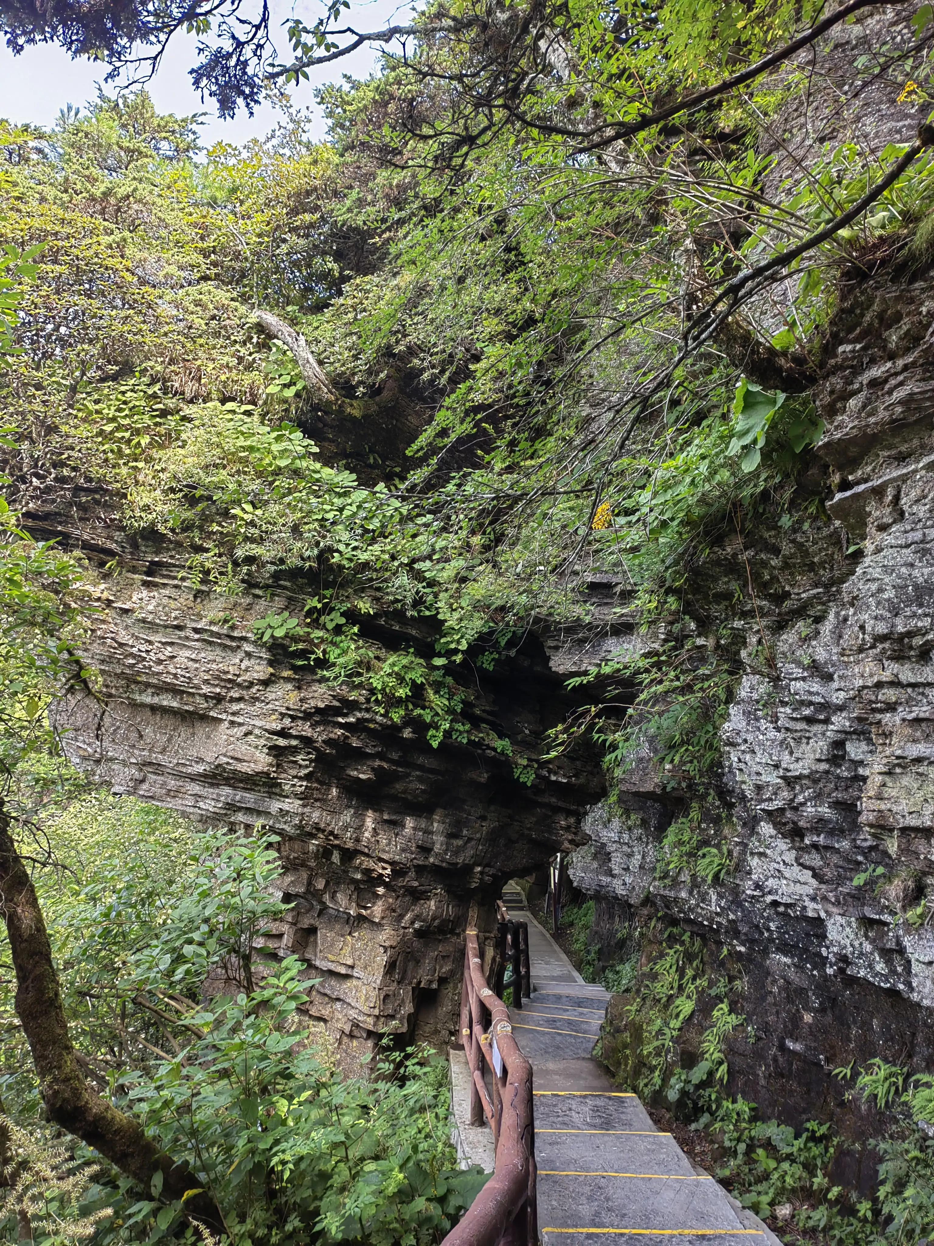 每个山峰之间有栈道相连,部分栈道下面是空的,但是也不吓人,这是上面的风很大,对穿戴帽子和穿裙子的人有一点不太友好。山上有很多几百年树龄的山楂树和杜鹃花树,这种体型比较大的山楂树和杜鹃花树我是见过一些的,但是这么高龄的还是第一次见。