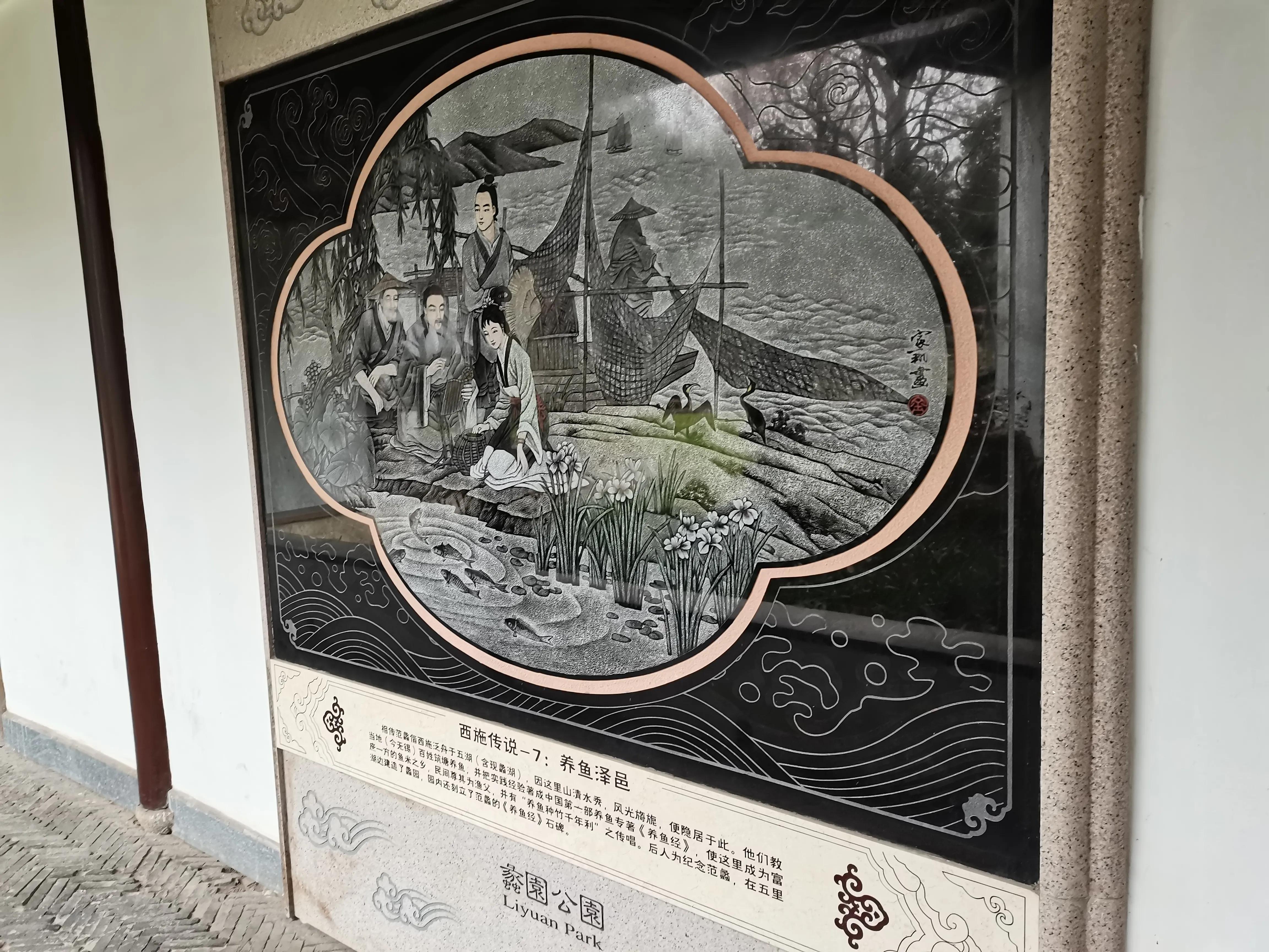 蠡湖,原名漆湖、五里湖,相传春秋时越国大夫范蠡偕美人西施泛舟于此,湖因人而得名,园因湖而得名。